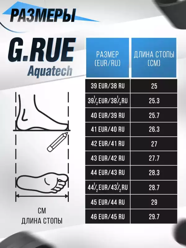 Мотокроссовки G_Rue имеют спортивную колодку. Ключевой параметр — длина стопы в сантиметрах.