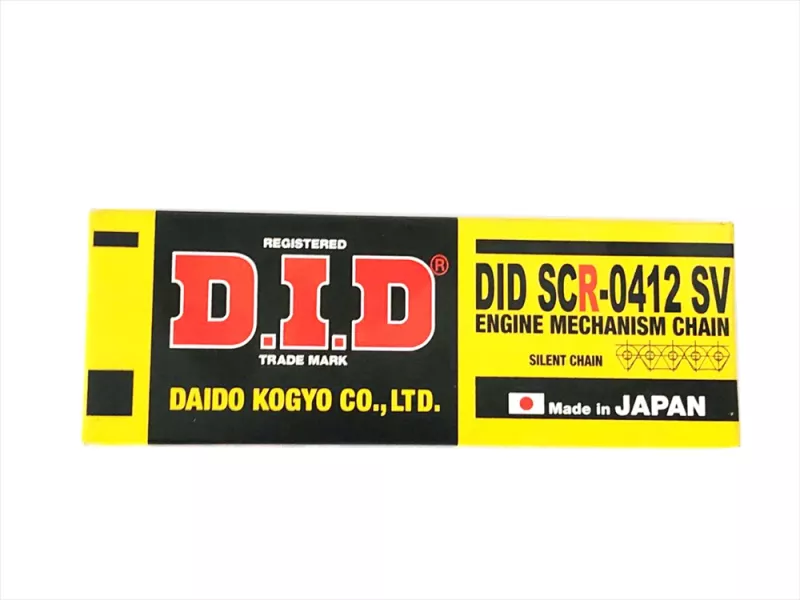 В двигателях мотоциклов цепи ГРМ, обычно используются с шагом 6,35 мм или втулочные цепи. Цепи ГРМ DID для мотоциклов, обладают отличной износостойкостью, усталостной прочностью, бесшумностью и ударной вязкостью, поэтому они также используются в высокоскоростных двигателях мотоциклов как в Японии, так и за рубежом. Цепи ГРМ DID, с завода устанавливаются на большинство мототехники японского или европейского производства.
